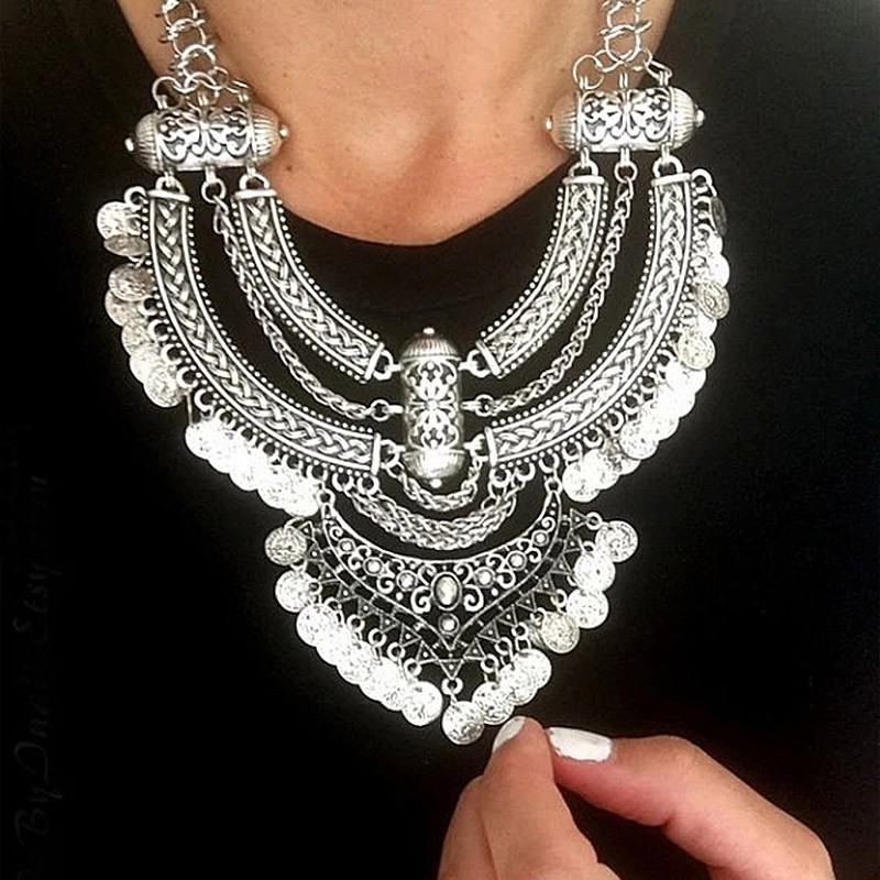 Compra online un collar vintage boho-chic de plata. Es un regalo perfecto para ti, tus amigos y familiares. Original, único y atemporal, este collar vintage iluminará tu rostro y realzará tu atuendo. Ajustable con su cadena, se adapta perfectamente a tu cuello. Muy práctico, puedes ponerlo en la vida cotidiana, de día o de noche en eventos formales o casuales. Puedes llevarlo en la ciudad, en una fiesta, en una boda o en una velada romántica con tu amante o una cena con amigos.