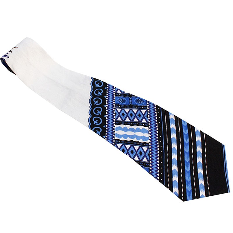 Comprar en linea una corbata étnica dashiki blanca y azul para hombre.