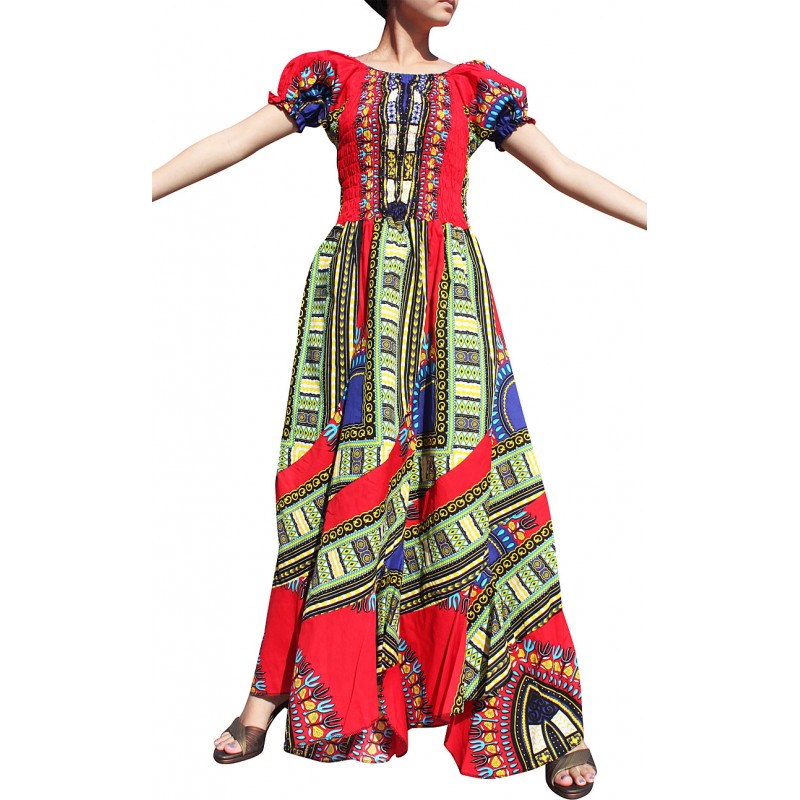Comprar en linea un vestido de noche largo dashiki rojo.