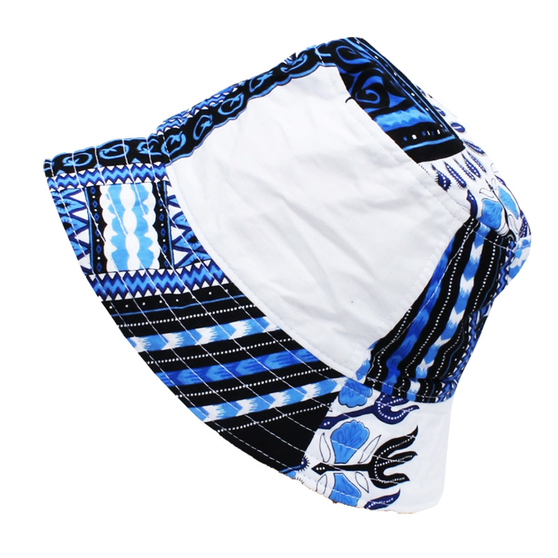 Chapeau bob ethnique blanc et bleu Dashiki
