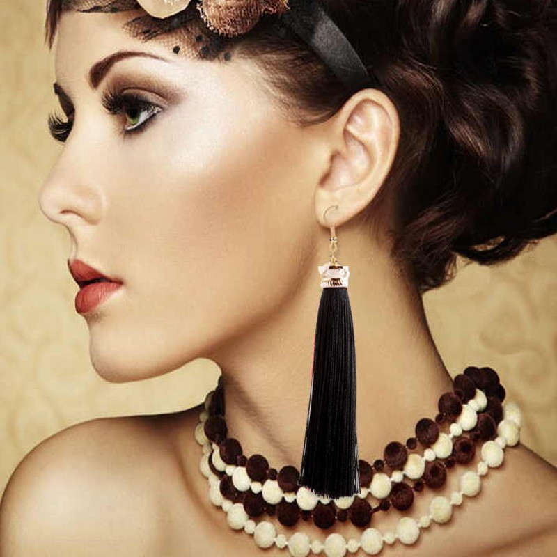Achetez en ligne des boucles d'oreilles noires élégants pompons pour femme.