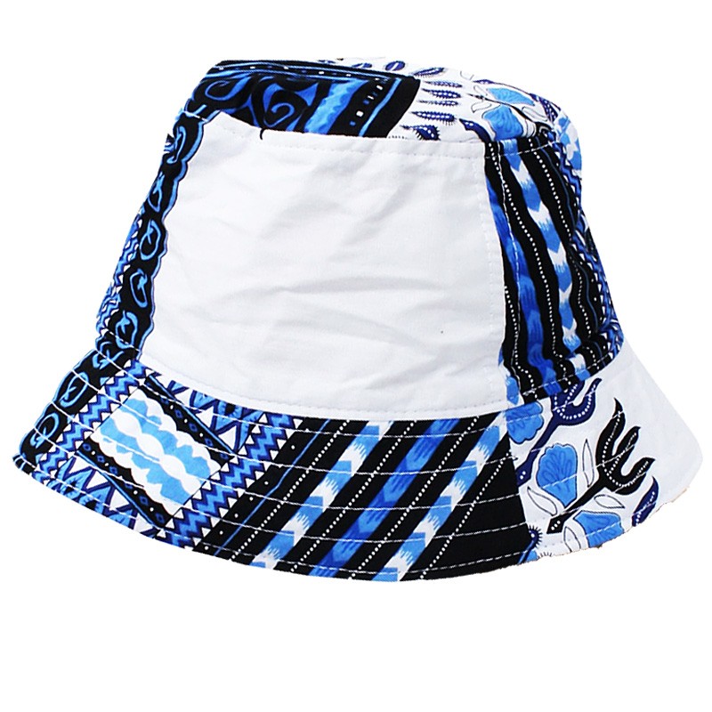 Chapeau bob ethnique blanc et bleu Dashiki