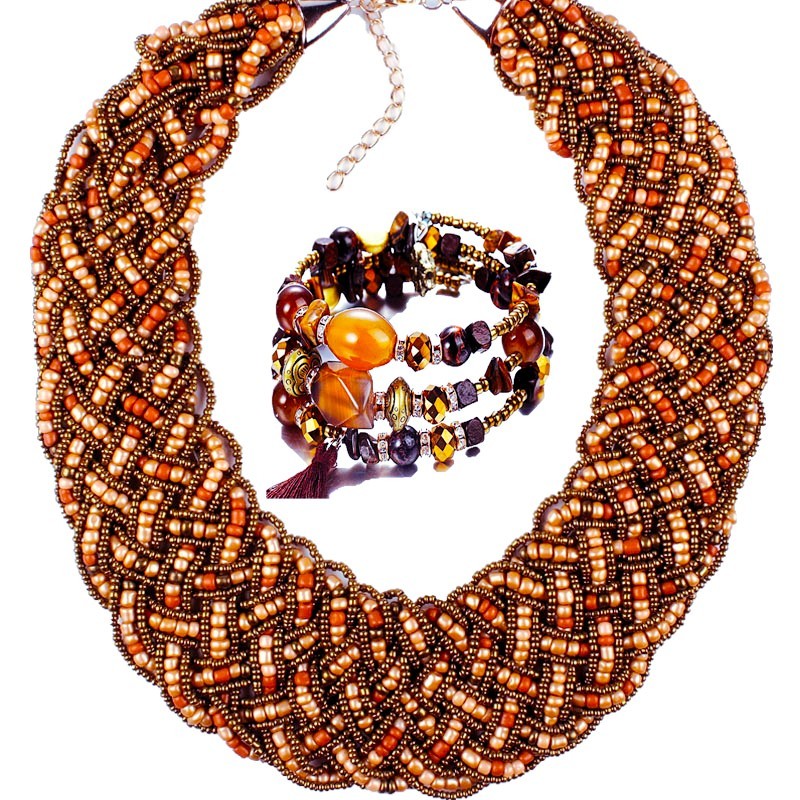 Acheter en ligne une parure collier et bracelet en perles fines marrons.