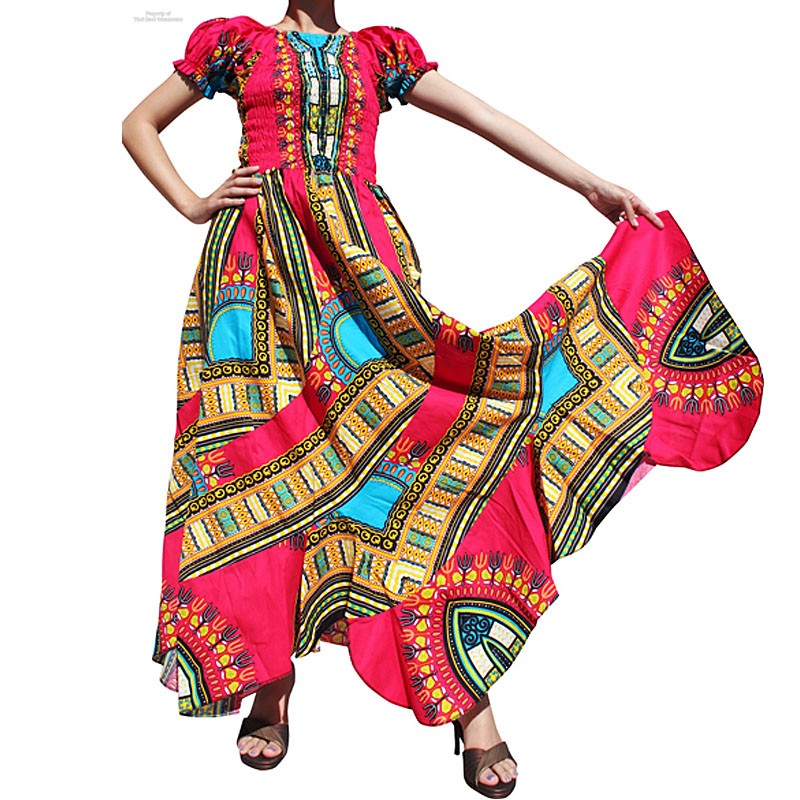 Acheter en ligne une robe longue de soirée Dashiki rose.