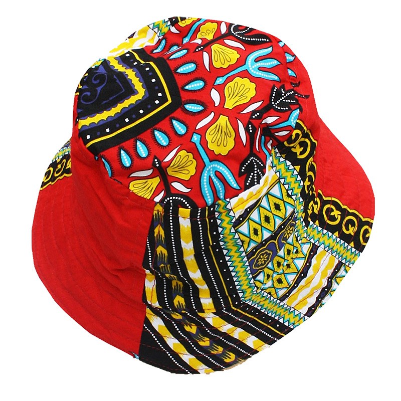 Acquista online un cappello da pescatore etnico rosso Dashiki.