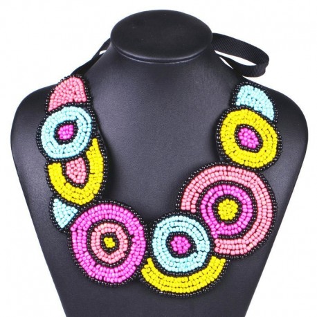 Acquista online una collana etnica rosa multicolor giallo e blu